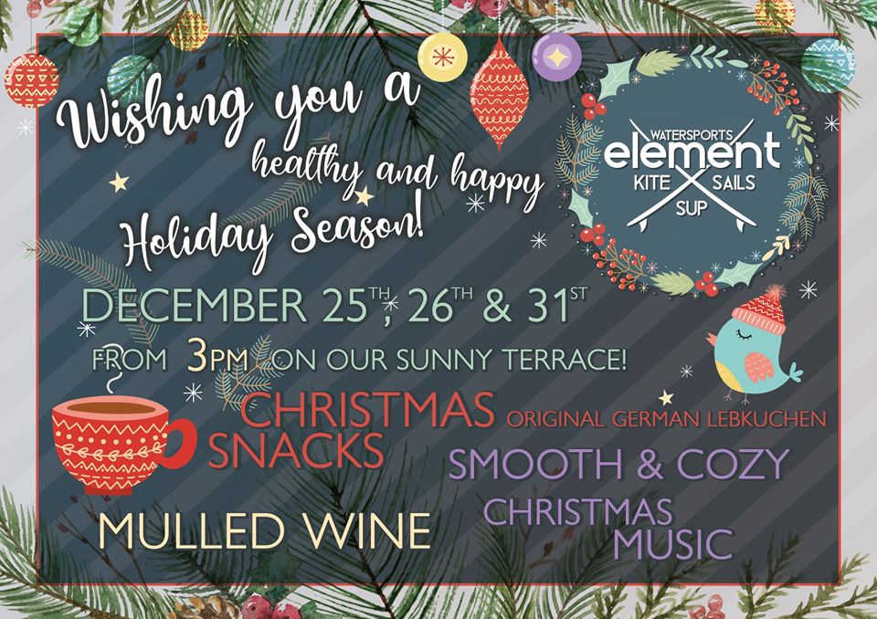 Christmas and New Year’s Eve at Element Watersports will prove to be a unique one – enjoy uplifting Christmas tunes while you soak up the winter sun on the rooftop terrace, indulge in a cozy cup of Gluhwein and snack on delicious Christmas cookies on December 25, 26 and 31 from 3 pm.